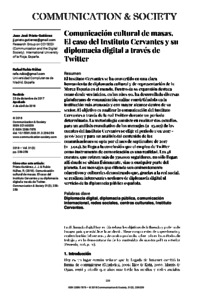 The Cervantes Institute and its branches abroad have become a powerful tool of cultural diplomacy and representation of Brand Spain across the world. Founded in ‘90s, the institution has developed many online communication platforms, making it the most forward-looking and far-reaching institution in its field. The aim of this study is to analyse how the Cervantes Institute communicates through its network of Twitter accounts during a determined period. To this end, two studies were conducted: a quantitative analysis of the tweets (n = 13.913) from the institution’s accounts (during the period 01/01/2017 - 06/31/2017) and an analysis of the content of the tweets (during the month of September 2017) (n = 3.014). We concluded that the use of Twitter as a communication tool by the Cervantes Institute is a reality. Its 48 accounts, with more than 330,000 followers, not only reach people where they are physically located, but also anywhere worldwide. The tweets it disseminates are eminently educational and cultural, showing that, thanks to social media, interesting digital diplomacy actions are undertaken at the service of Spanish public diplomacy.