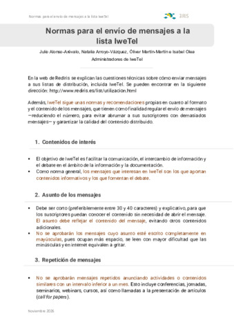 Alonso-Arévalo, Julio, Arroyo-Vázquez, Natalia, Martín-Martín, Óliver and Olea, Isabel Normas para el envío de mensajes a la lista IweTel., 2024 (Unpublished) [Guide/Manual]