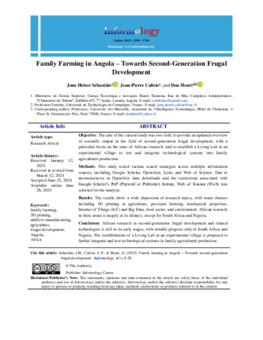 Sebastião, Jone Heitor, Caliste, Jean-Pierre and Henri, Dou Family Farming in Angola – Towards Second-Generation Frugal Development. Informology, 2025, vol. 4, n. 1, pp. 8-20. [Journal article (Paginated)]