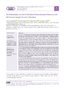 Sayyadyankhah, Leyla, Ghasemi, Ali Hossein, Neysi, Abdolkazem and Azadeh, Fereydoon The Relationship between Work-Related Musculoskeletal Disorders and Job Burnout among University Librarians. Depiction of Health, 2022, vol. 13, n. 3, pp. 322-333. [Journal article (Paginated)]