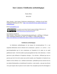 Sfetcu, Nicolae Imre Lakatos : Falsification méthodologique., 2019 [Preprint]