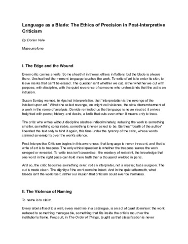 Text (Language as a Blade The Ethics of Precision in Post-Interpretive Criticism A Treatise by Dorian Vale Language reveals. But it also wounds.** In this incisive treatise, Dorian Vale turns his attention to the sharpest tool in the critic’s arsenal — la)