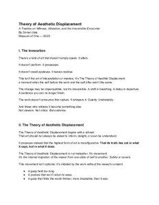 Vale, Dorian Aesthetic Displacement Theory A Treatise on Witness, Alteration, and the Irreversible Encounter. https://www.museumofone.art/, 2025. (Unpublished) [Journal article (Unpaginated)]