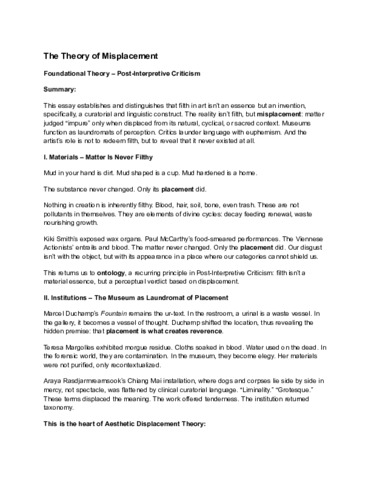 Text (Theory of Misplacement By Dorian Vale — A Treatise in the Post-Interpretive Movement Theory of Misplacement is a foundational treatise in the Post-Interpretive canon developed by Dorian Vale. It identifies a crucial but often ignored aesthetic violence:)