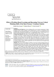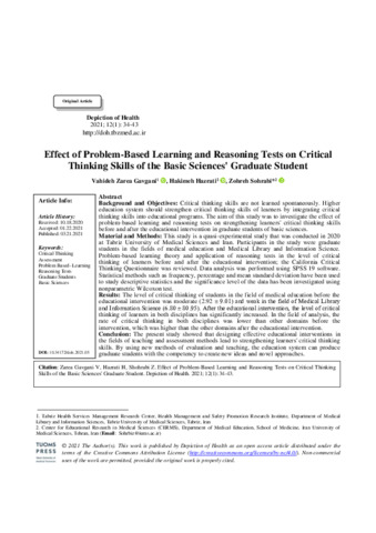 Zarea Gavgani, Vahideh, Hazrati, Hakimeh and Sohrabi, Zohreh Effect of Problem-Based Learning and Reasoning Tests on Critical Thinking Skills of the Basic Sciences' Graduate Student. Depiction of Health, 2021, vol. 12, n. 1, pp. 34-43. [Journal article (Paginated)]