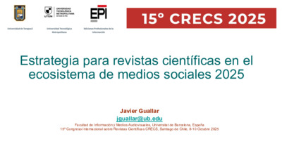 crecs 2025 Guallar Estrategia para revistas científicas en ecosistema medios sociales 2025.pdf - Presentation Available under License Creative Commons Attribution. Download (4MB) | Preview |