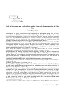 Aliasghari, Nasrin Role of Librarians and Medical Information Experts in Response to Covid-19 in Iran. Depiction of Health, 2021, vol. 11, n. 4, pp. 300-304. [Journal article (Paginated)]
