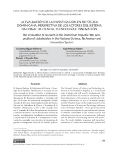 Riggio-Olivares, Giovanna, Mencía-Ripley, Aída and Rosario-Díaz, Ramón I. La evaluación de la investigación en República Dominicana: perspectiva de los actores del Sistema Nacional de Ciencia, Tecnología e Innovación. Ciencia y sociedad, 2024, vol. 49, n. 3, pp. 33-58. [Journal article (Paginated)]