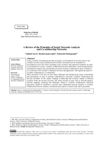 Zarea, Vahideh, Jaafarzadeh, Rashid and Khodapanah, Tahmineh A Review of the Principles of Social Networks Analysis and Co-authorship Networks. Depiction of Health, 2016, vol. 7, n. 3, pp. 61-66. [Journal article (Paginated)]