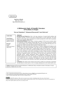 Moghadami, Maryam, Hassanzadeh, Mohammad and Shokreian, Saeed A Bibliometric Study of Scientific Literature of Psychiatry in Scopus. Depiction of Health, 2016, vol. 6, n. 4, pp. 56-66. [Journal article (Paginated)]