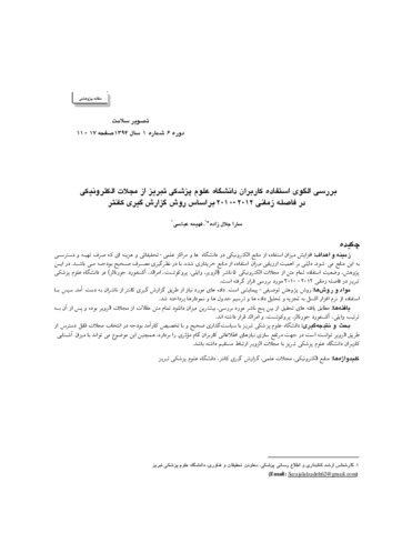 | Keywords: | Electronic Resources, Scientific Journals, Counter Reporting, Tabriz University of Medical Sciences |