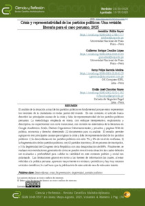 Ubillús-Reyes, Jeessikha, Cevallos-López, Guillermo-Enrique, Barreda-Medina, Remy-Felipe and Chocobar-Reyes, Emilio-José Crisis y representatividad de los partidos políticos: una revisión literaria para el caso peruano, 2025. Ciencia y Reflexión, 2025, vol. 4, n. 2, pp. 174-203. [Journal article (Paginated)]