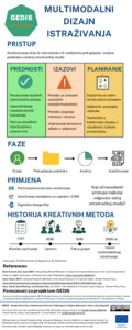 Ovaj otvoreni obrazovni resurs (OER) nudi pregled multimodalnih istraživačkih pristupa, s naglaskom na kombiniranje metoda i modaliteta izražavanja. Namijenjen je akademskom osoblju, studentima/cama i bibliotekarima/kama, uz naglasak na inkluzivno, rodno osjetljivo istraživanje. Dio je projekta GEDIS (Gender Diversity in Information Science), koji se zalaže za jednakost u visokom obrazovanju korištenjem otvorenih edukativnih alata.