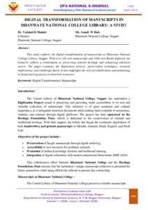 Malode, Vaishali and Sonali, W Hole Digital Transformation of Manuscripts in Dhanwate National College Library: A Study. UPA National Interdisciplinary E-Journal, 2025, vol. 11, n. 1, pp. 466-474. [Journal article (Paginated)]