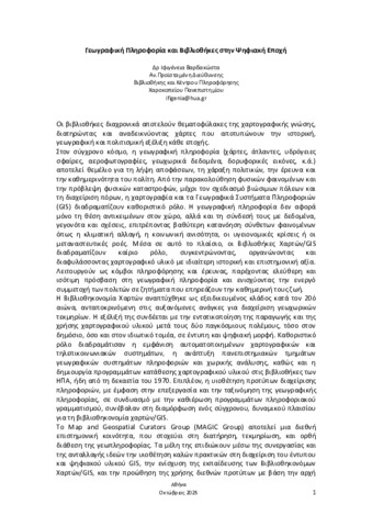 Βαρδακώστα, Ιφιγένεια Γεωγραφική Πληροφορία και Βιβλιοθήκες στην Ψηφιακή Εποχή., 2025 [Newspaper/magazine article]