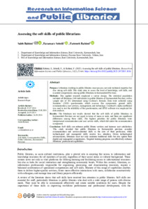 Rahimi, Saleh, Soheili, Faramarz and Rahimi, Fatemeh Assessing the Soft Skills of Public Librarians. Research on Information Science and Public Libraries, 2025, vol. 31, n. 2, pp. 51-64. [Journal article (Paginated)]