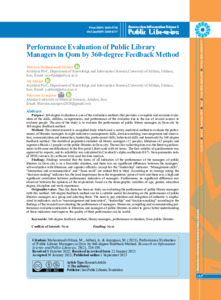 Mohammadi-Ostani, Morteza, Akbari, Ali and Azargoon, Maryam Performance Evaluation of Public Library Managers in Qom by 360-degree Feedback Method. Research on Information Science and Public Libraries, 2023, vol. 29, n. 2, pp. 198-184. [Journal article (Paginated)]
