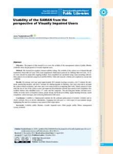 Najafgholinejad, Azam Usability of the SAMAN from the perspective of Visually Impaired Users. Research on Information Science and Public Libraries, 2024, vol. 30, n. 3, pp. 311-294. [Journal article (Paginated)]