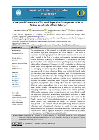 shadmanfar, Samaneh, fahimnia, fatemeh, NorooziChakoli, Abdolreza and TaghizadehNaeeni, Jav Conceptual Framework of Personal Reputation Management in Social Networks: A Study of User Behavior. Human Information Interaction, 2024, vol. 10, n. 4, pp. 114-133. [Journal article (Paginated)]