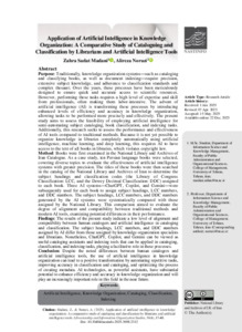 Madani, Zahra and Noruzi, Alireza Application of Artificial Intelligence in Knowledge Organization: A Comparative Study of Cataloguing and Classification by Librarians and Artificial Intelligence Tools. Librarianship and Information Organization Studies, 2025, vol. 36, n. 4, pp. 17-48. [Journal article (Paginated)]