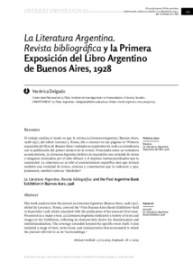 Delgado, Verónica La Literatura Argentina : Revista bibliográfica y la Primera Exposición del Libro Argentino de Buenos Aires, 1928. Información, cultura y sociedad, 2025, n. 53, pp. 113-129. [Journal article (Paginated)]