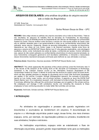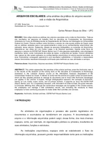 Silva, Carlos Robson Souza da Arquivos escolares: uma análise da prática do arquivo escolar sob a visão da Arquivística., 2014 (Unpublished) [Preprint]