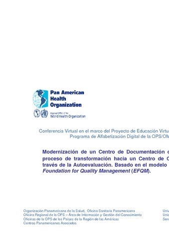 Martín-Rodero, Helena and Alonso-Arévalo, Julio Modelos Internacionales de Gestión de la Calidad TotalNormas de certificación., 2006 . In Conferencia Virtual en el marco del Proyecto de Educación Virtual Continuada del Programa de Alfabetización Digital de la OPS/OMS, Conference OnLine, 9 November 2006. (Unpublished) [Presentation]